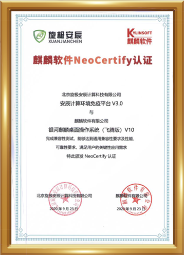 本次安辰计算环境免疫平台V3.0与国产麒麟操作系统的兼容性互认证,将为旋极安辰在信创领域实现可信计算软件解决方案打下技术基础,为安全可信的国产设备在全国党政机关顺利实施提供了完善的技术支持。本次互认证的完成,将为旋极安辰更全面的融入国产软硬件生态打下基础,为信创产业发展提供新动能。