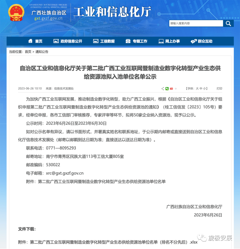 图1:广西壮族自治区工业和信息化厅公示通知