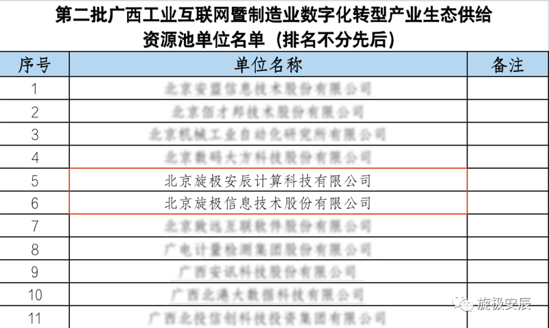 旋极安辰入选广西工业互联网暨制造业数字化转型产业生态供给资源池