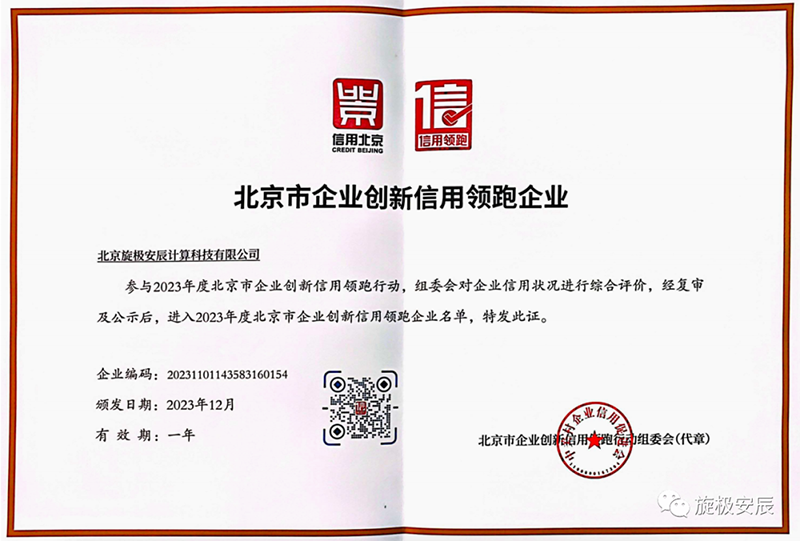 旋极安辰实力上榜北京市企业创新信用领跑企业名单