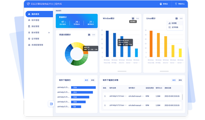 为系统提供软件安全检测、安全下载和安全使用的统一安全管理机制,保证软件的规范管理与使用。