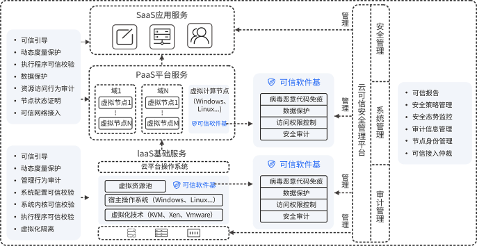 采用可信计算3.0技术实现对已知、未知病毒木马的主动防御,对安全风险进行统一管控。