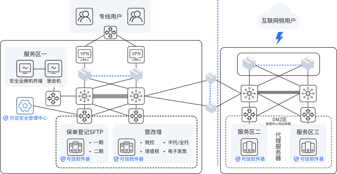 旋极安辰金融行业解决方案,从管理和技术角度上,建立多层安全体系,保证了金融机构数据业务网的安全性、保密性。结合可信计算技术,采用主动免疫系统防御机制,对操作系统进行安全增强,打造服务器本身的免疫系统。有效解决了核心业务系统面临的已知、未知漏洞带来的安全威胁。